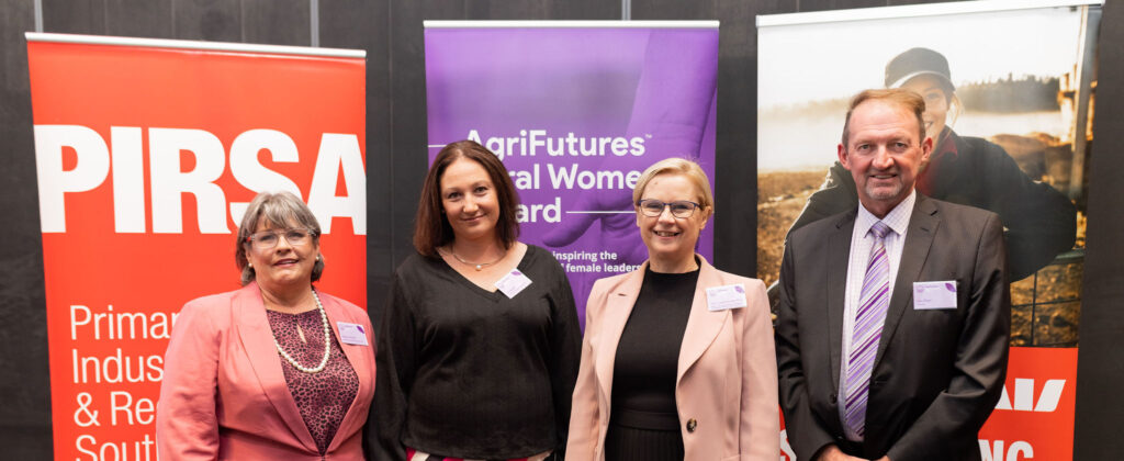 L to R: 2022 SA Rural Women’s Award Winner Robyn Verrall, 2023 SA Rural Women’s Award Winner Ali Paulett, The Hon. Clare Scriven MLC, (Minister for Primary Industries, Regional Development, Forestry) and Les Ryan (Regional General Manager, Agribusiness, BankSA).