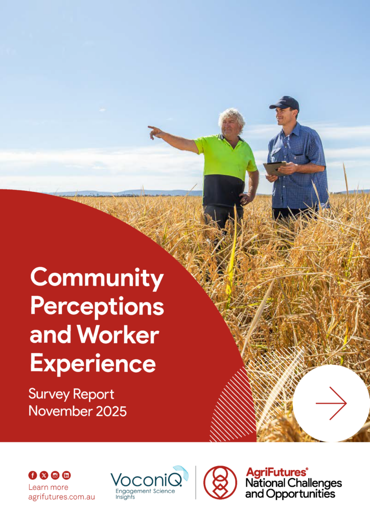 This report presents findings from the 2025 Community Perceptions and Worker Experience survey, exploring how Australians view rural industries and what influences attraction to and retention within, the agricultural workforce. It provides evidence-based insights to support industry leaders and policymakers in building a skilled, safe and sustainable workforce for the future.