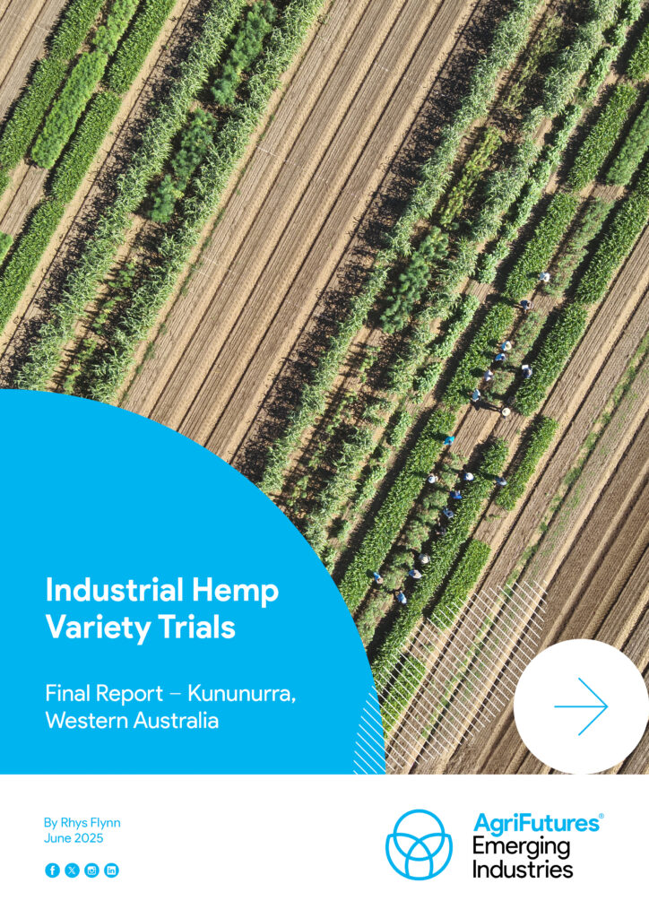 AgriFutures Australia has identified strong growth potential for industrial hemp (Cannabis sativa L.), driven by its sustainable uses. The 2017 approval of hemp grain for human consumption by FSANZ has further accelerated industry expansion in Australia. However, the industry still faces challenges such as limited regional agronomic data, unclear varietal suitability and inconsistent production practices. Addressing these knowledge gaps is critical to realising the economic and environmental potential of industrial hemp.
