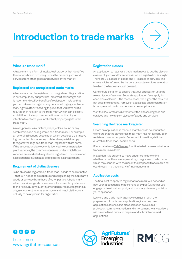 This document provides an introduction to trade marks, explaining their purpose, types and the process of registration in Australia.