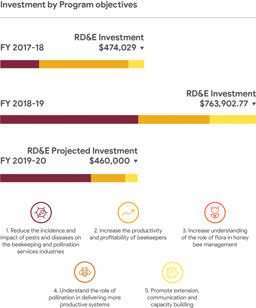 The AgriFutures Honey Bee & Pollination Strategic RD&E Plan (2020-2025) has identified six high-impact, far-reaching objectives to benefit the industry: