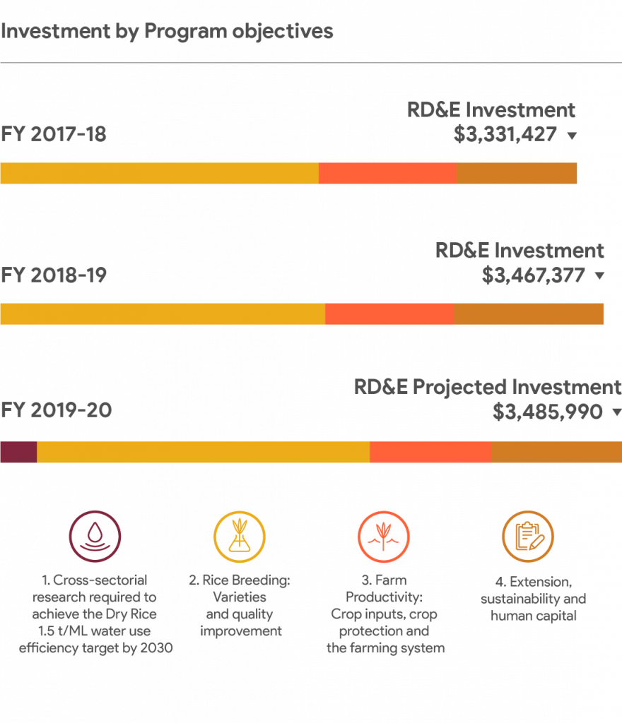 The Rice Industry R&D Plan 2016/17-2021/22 builds on previous five-year investment programs. A significant share of the RD&E that underpins the rice industry success has been managed by AgriFutures Australia since 1991. The Australian rice industry is strongly supportive of the RD&E program and its management by AgriFutures Australia.
